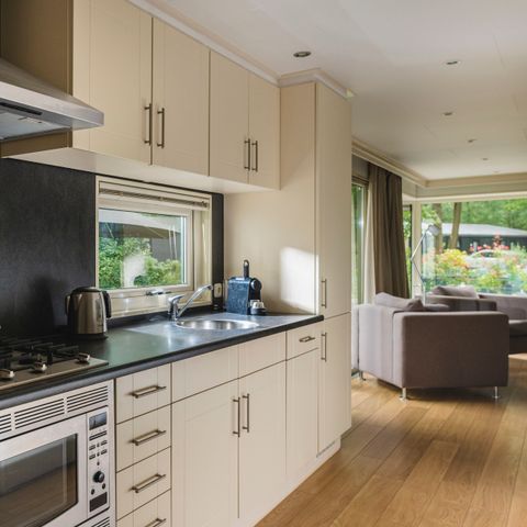 The children will have a great time in the holiday park's outdoor pool. There is also a children's pool in the outdoor pool for the little ones. If the weather is not so good, the children can go to swimming pool De Vijf Heuvels, which is located on the other side of the holiday park. This swimming pool has both a lovely indoor and outdoor pool and is open all year round. Children can also let off steam in the playground with a playing field. The surrounding area is also suitable for children; take a day trip to Avonturenpark Hellendoorn, for example.
