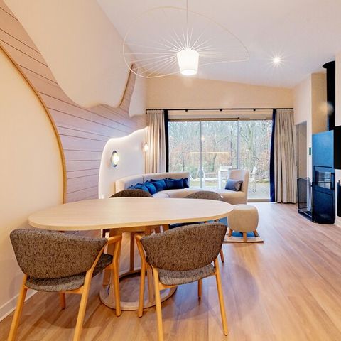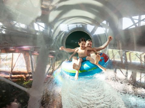 The large swimming pool at Center Parcs Villages Nature Paris is the heart of the park and offers a wide range of attractions included in the stay. These include several slides, the Water Playhouse, vast lagoons and the adventure course The Rock, which requires agility and courage. The large wave pool provides extra water fun and is one of the most popular parts of the pool. There are also optional activities such as Aqua Bike, Aqua Scooter, Aqua Slide, Aqua Gym and baby swimming. For toddlers, there is a playfully designed water playground inviting them to splash and explore. The outdoor pool is open all year round and the children's pool is also pleasantly heated, allowing families to swim comfortably in any season.
