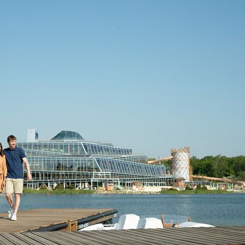 At the heart of the park is the Lakeside Promenade, a lively area with restaurants, small shops and a supermarket. Here you can relax and eat, shop or simply enjoy the view over the lake. Active guests can explore the car-free trails by bike, rent an electric boat or take up their personal challenge on the High Adventure Trail. Those who like to be sporty will find variety with archery, climbing and mini-golf. The park's climbing walls also offer exciting challenges both indoors and outdoors. For indoor entertainment, bowling, the Gametown amusement arcade and various game and exercise options that are available regardless of the weather, provide entertainment.