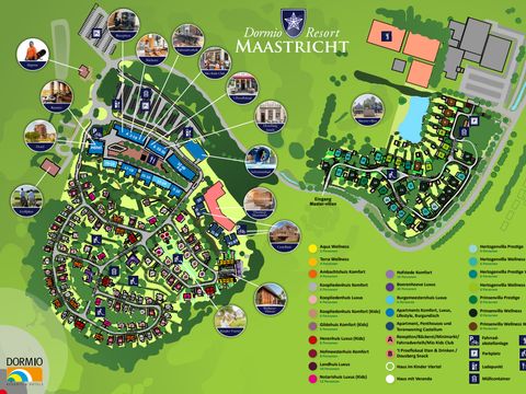 At Dormio Resort Maastricht, you will find a modern and well-equipped holiday park with everything you need for a successful holiday. The luxurious holiday homes and flats offer you maximum comfort and are fully equipped. The resort includes a wellness area with swimming pool, sauna and fitness facilities. The resort has its own supermarket for your shopping needs and bicycles can be hired directly from the resort to explore the surrounding area.