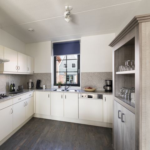 The 6-pers. bungalow VO6 is an upstairs flat and consists of so-called dike houses and water houses. The dike houses are accessible via the ground floor, but have a staircase in the house. One of the bathrooms is always on the upper floor. To enter the water houses, a substantial staircase has to be climbed. If you have preferences, please specify them.