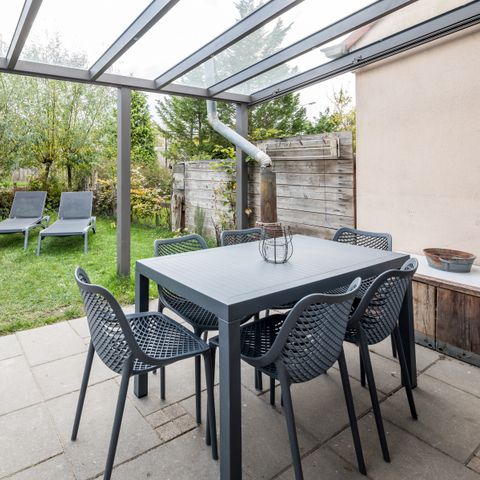 The holiday park itself offers a range of sporting and play facilities. You can kick a ball around on the sports/playing field or play table tennis. There is a playground for the children where they can let off steam. The park is also just 1 km from the sea, so you can get to the beach quickly. There is also a golf course in the neighbourhood.