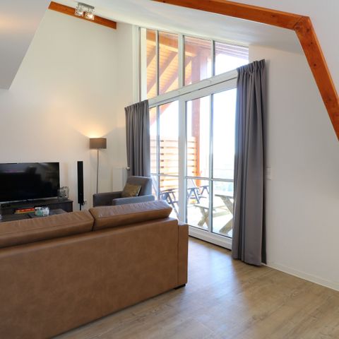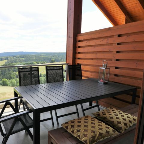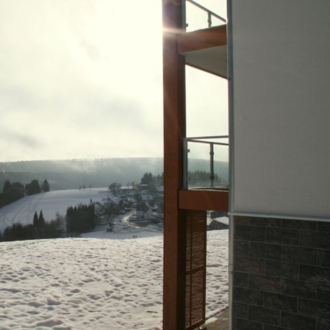 The spacious living room with open kitchen and cosy seating area gives you access to the covered balcony or terrace. The kitchen is equipped with all modern conveniences and a spacious dining table. All bedrooms also have ample closet space. From the entire complex you therefore have a fantastic view over the slopes of the Postwiese ski area and the beautiful hilly landscape.